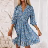 Unique Design: Women’s summer V-neck flower dress with a waistband design, classic A-version style, comfortable fabric, highlighting a feminine and gentle temperament, Bohemian style