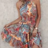 Irregular Printed Vest Backless Dress Women Summer Sexy Sleeveless Mini Dresses Party Clothes